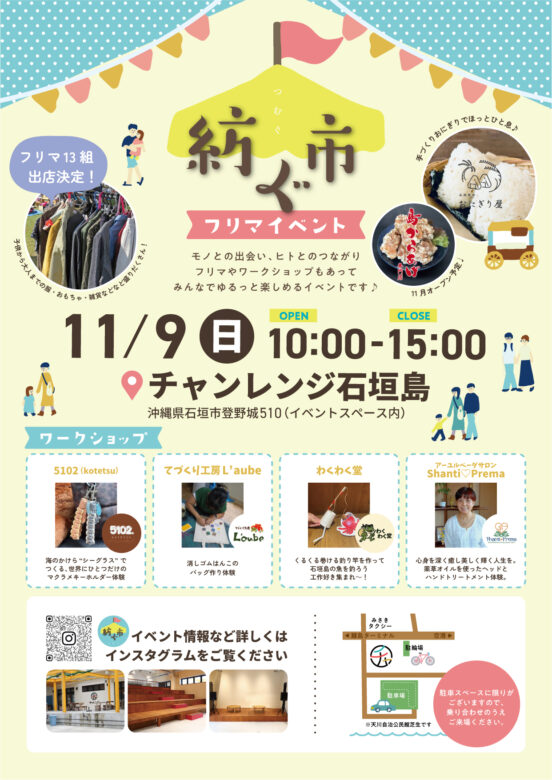 石垣市登野城のコワーキングスペース「チャレンジ石垣島」でフリーマーケットイベント「紡ぐ市」を開催します!