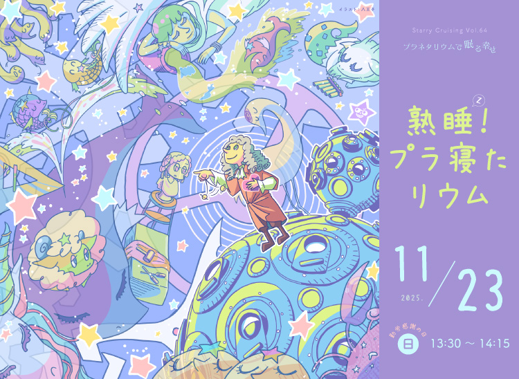熟睡プラ寝たリウムは、毎年、勤労感謝の日を中心に全国各地で行われている「寝るため」のプラネタリウム。年々開催館が増えていき、今年は全国約70館で開催!各館いろいろな趣向で、皆さまを眠りに誘います。