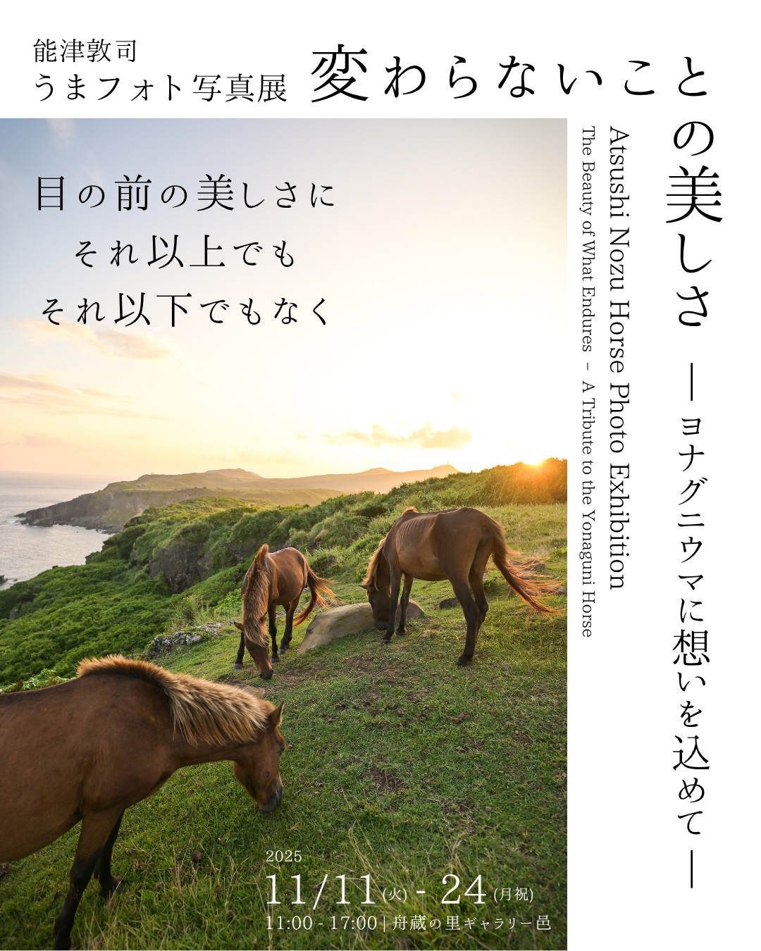 ギャラリー邑では「能津敦司うまフォト写真展 変わらないことの美しさ―ヨナグニウマに想いを込めて」を開催いたします。