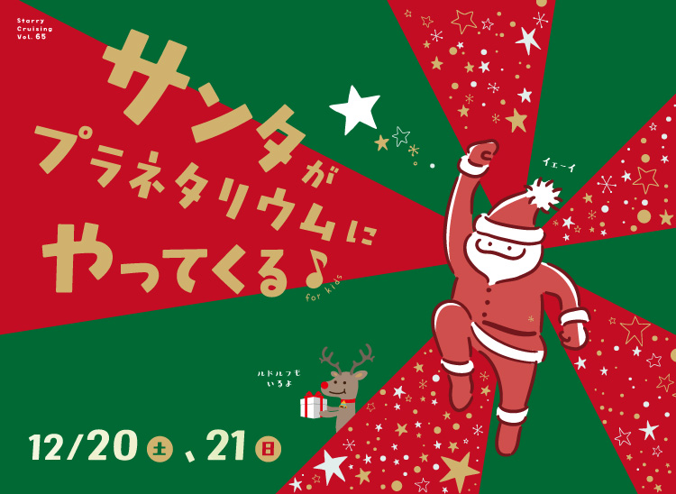12/20(土)・21(日)に、Starry Cruising Vol.65「サンタがプラネタリウムにやってくる♪ for kids」を投映いたします。