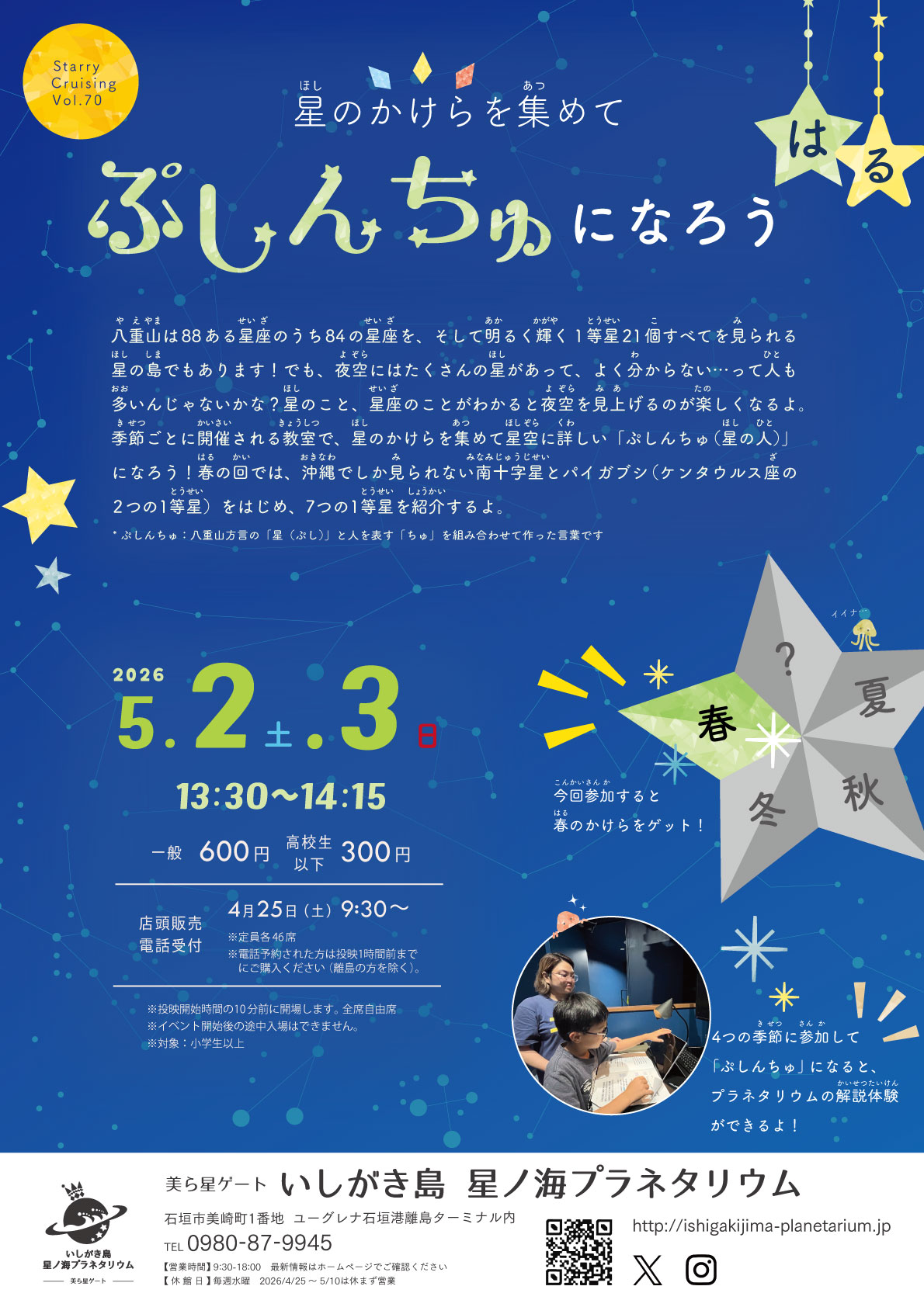 5/2(土)・3(祝・日)に、『星のかけらを集めてぷしんちゅになろう~はる~』」を開催いたします。